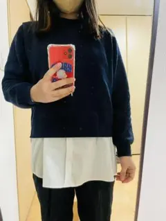オトナの重ね着見せシャツトレーナーです。