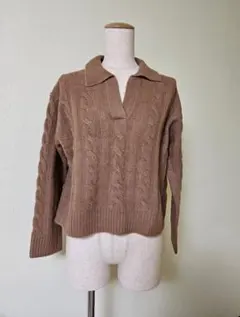 - デザイン: ケーブルニット、Vネック、長袖