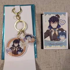伊之助コスチュームを着たキャラクターのアクリルキーホルダーと特典カードのセット。