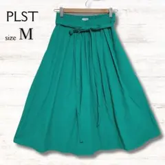 PLST プラステ ひざ丈 フレアスカート 無地 ウエストゴム ポケット有