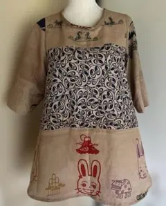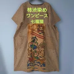 『一点物!』風呂敷リメイク✼柿渋染め✼綿✼唐草模様柄✼Aラインワンピース✼