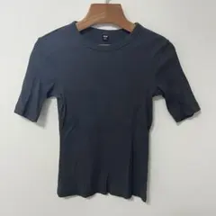 大人気✨ ユニクロ UNIQLO リブ 半袖 Tシャツ 細見え 秋色 赤 M