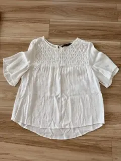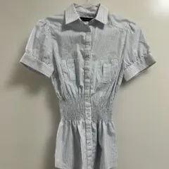 【ZARA BASIC】ザラ レース切り替えブラウス ストライプ柄(M)