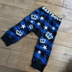 ダークグレーのBABYDOLLパンツ、クラウン刺繍付きでおしゃれ。