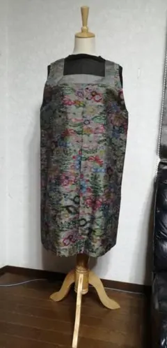 銘仙の着物をリメイクして、ロングワンピースを作りました。