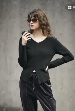 このオレンジのニットは、リブ編みのテクスチャーが特徴で、シンプルながらも洗練された印象を与えます。
