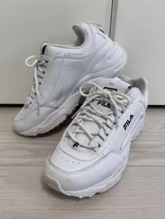 FILAのホワイトスニーカー、合成皮革製でスタイリッシュ。