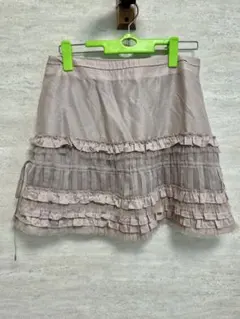 迷彩柄のフリル付きミニスカート、ウエストはゴム仕様で快適な着用感。