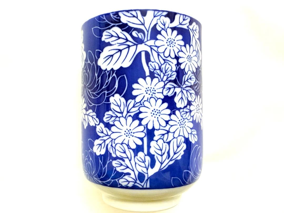 上品な藍色の染付に白い花模様が美しく映える、有田焼・哲山作の湯呑み5客セットです。