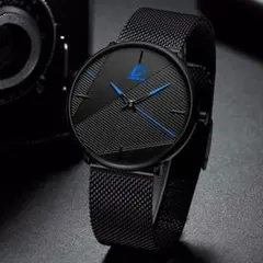 腕時計 超薄型 ステンレス鋼 ステンレスベルト クォーツ腕時計 ブルー