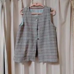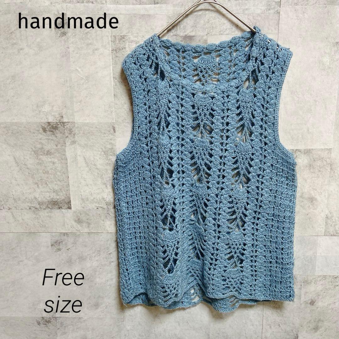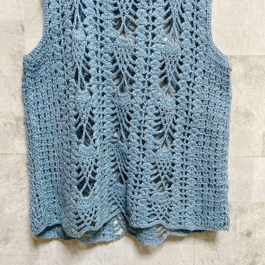 handmade ハンドメイド ベスト【F】レース編み 鍵編み ブルー ニット