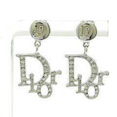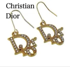 美品✨Dior ディオール ピアス ロゴ ラインストーン スイング