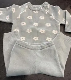 チェリー柄のクリーム色セーターとフラワースカートのセット。