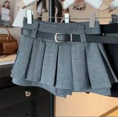 スカート M プリーツ ショーパン ベルト 韓国 Y2K グレー ミニスカ 秋冬