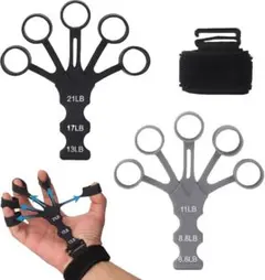 フィンガーホール付きのゴム製パワーグリップ、13LBから21LBまでの重量設定が可能。
