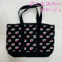 シンプルでスタイリッシュな黒のトートバッグ、agnès b.のロゴ刺繍付き。