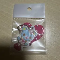 ピンクのクマ型チャームとビーズ入りボールが特徴のキーホルダー。