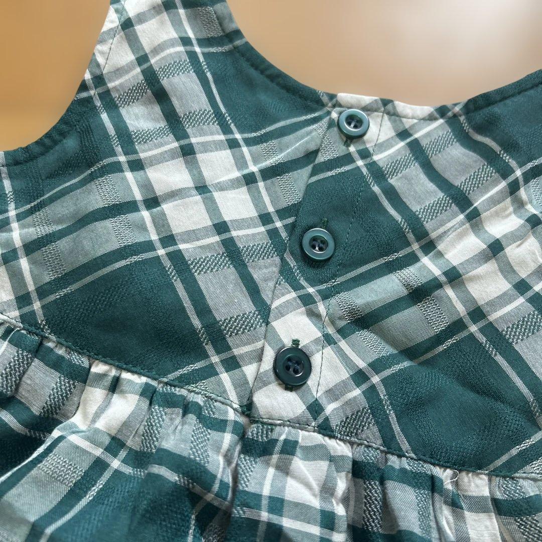 90サイズ⭐︎ナチュラルベーシック緑色と白のチェック柄ワンピース