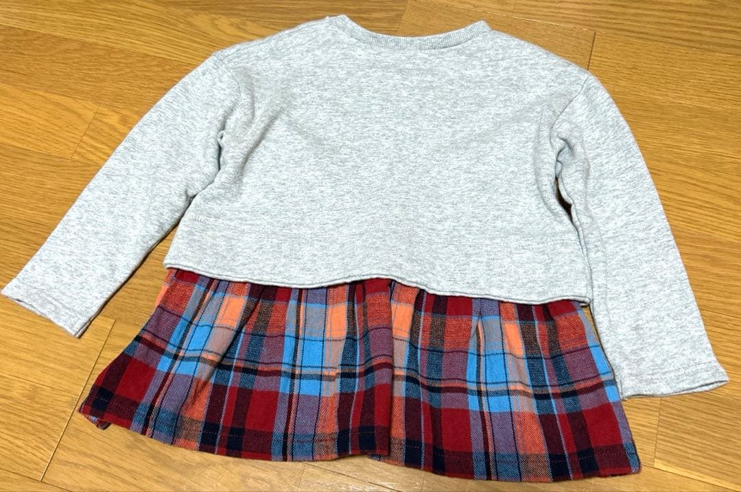 チェックシャツとトレーナーのドッキング長袖カットソーです^^