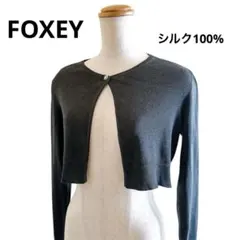 フォクシー ロングカーディガン カシミヤ シルク ロゴプレート ベージュ