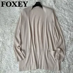 FOXEY フォクシー ロングカーディガン カシミヤ シルク ロゴプレート ベージュ 裏地なし ポケット