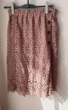 エレガントなテクスチャーの薄いピンクのタイトスカート。