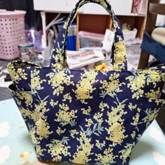 ハンドメイドチューリップバッグ ミモザ柄 ピンク