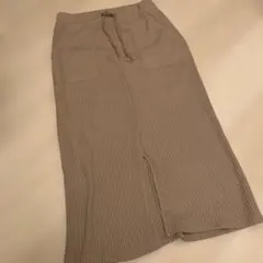 GU ロングスカート リブ タイト ブラウン M Iラインシルエット ニット