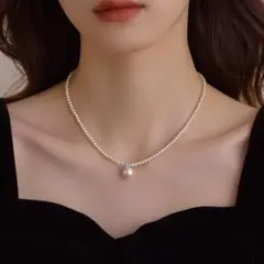 柔らかな光沢を放つ上質なパールが、首元に優雅な輝きをプラス。フォーマルな装いはもちろん、普段のコーディネートにも品格を添えてくれる一品です。