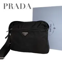 4078 美品 PRADA プラダ ショルダーバッグ 三角ロゴ 白タグ テスート ブラック ナイロン 黒 斜め掛け クロスボディ カメラバッグ