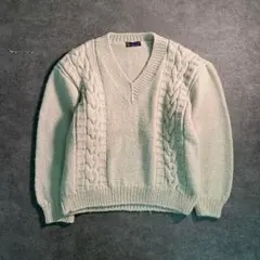 knit 長袖シャツ 古着 ニット生地 ボーダー 緑 ベージュ ブラウン 刺繍