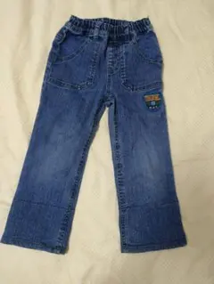 グレーにカラーの糸が織り込まれた感じのデニム生地で、薄い紫のステッチが可愛いです。
