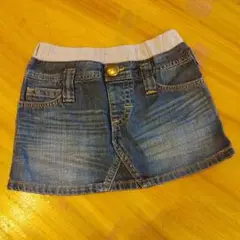 柔らかいタオル生地のイエロースカート、前面ポケット付き。
