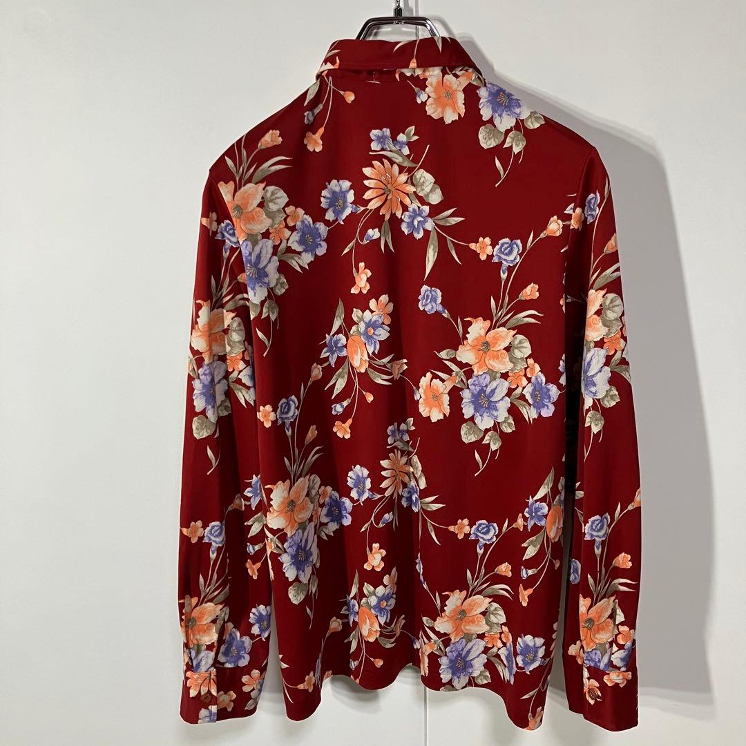 ヴィンテージ 花柄 ボタニカル レトロ ボタン スクエアカット ニット 長袖 シャツ 古着