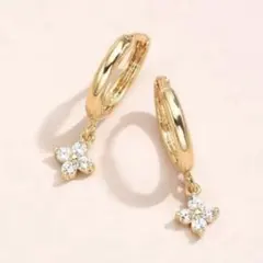 四つ葉クローバーピアス 可愛いピアス 小ぶりピアス キラキラ ゴールドピアス