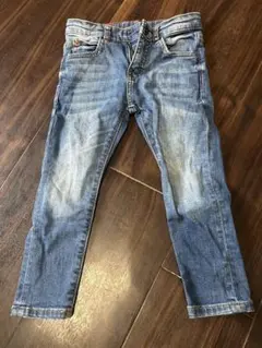 ZARAオンラインで購入しました。サイズの割には細身なので、120より小さめの設定にしています。細身のお子さんなら120くらいを着用されていたらよいのかなと思います。ストレッチがないわけではありませんが、そんなに強いストレッチではありません。