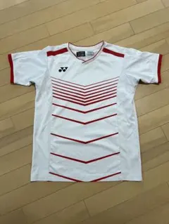 YONEXのイエローとブラックのグラフィックデザインのバドミントンウェア、ユニのSサイズ、ポリエステル製。