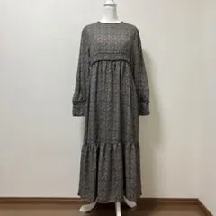 花柄ロングワンピース 長袖 ブラック・ホワイト