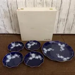 香蘭社 磁芸工房 金彩色絵花文 皿 五客 共箱