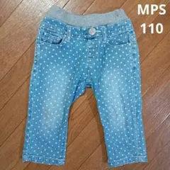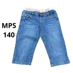 調節可能なウエストゴム付きのデニム風ハーフパンツ、サイズ110