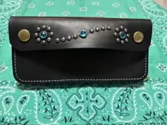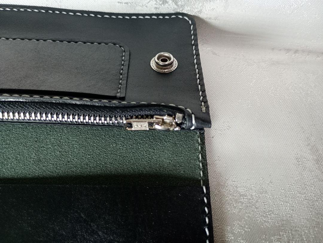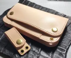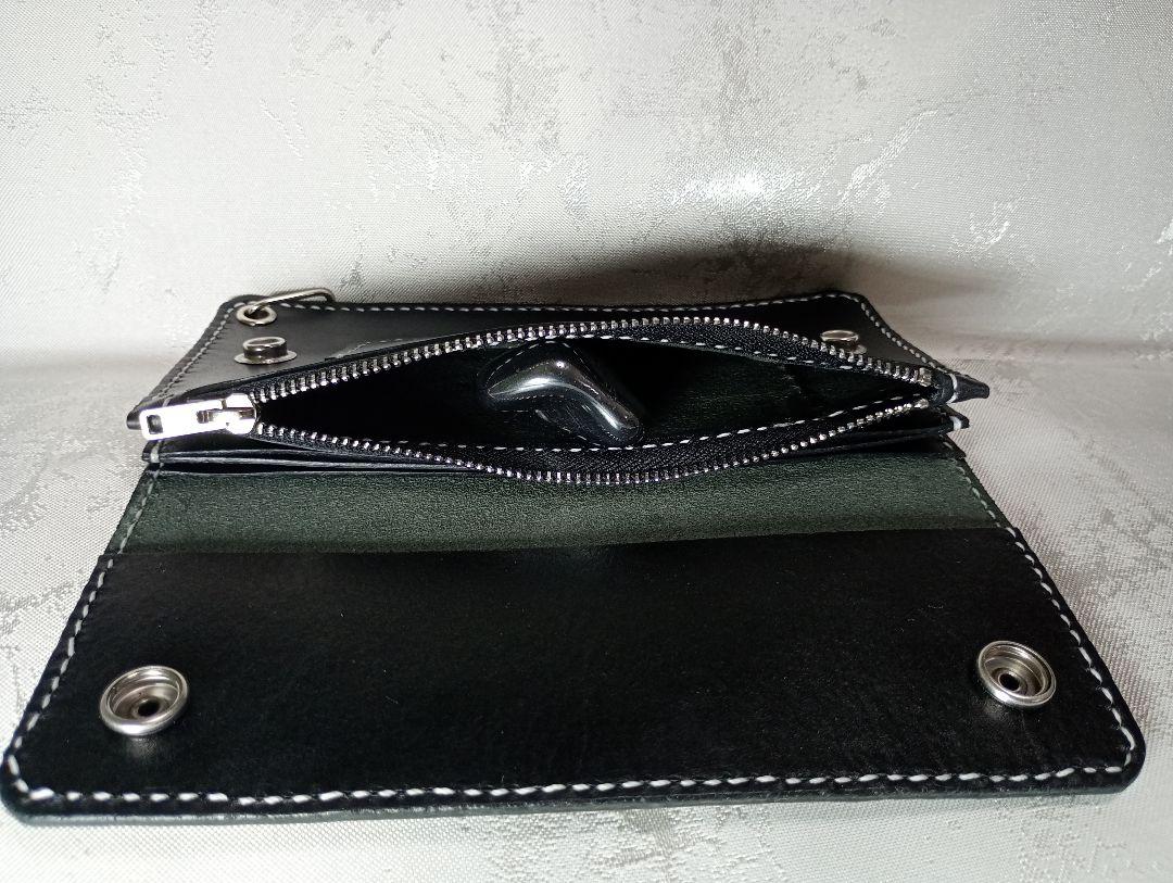 黒色 トラッカーウォレット 牛革 たつのレザー 植物タンニン鞣し 三層二つ折り