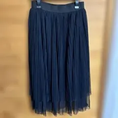 軽やかな素材のグレーのフレアスカートで、ウエストはゴム入りで調整可能です。