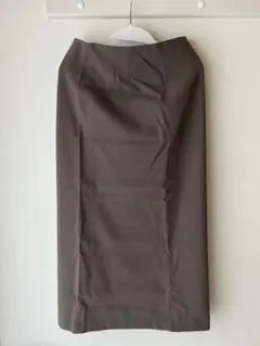 カーキ色のウエストリボン付きタイトスカート、ポリエステル素材で快適な着心地。
