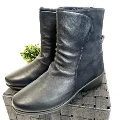 美品 fitfit フィットフィット 黒革 ロングブーツ 23