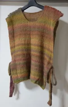 太め輪針で柔らかく編んでみました。かなり広がります。サイズはXL〜XXL、着るともう少し大きいかもしれません。