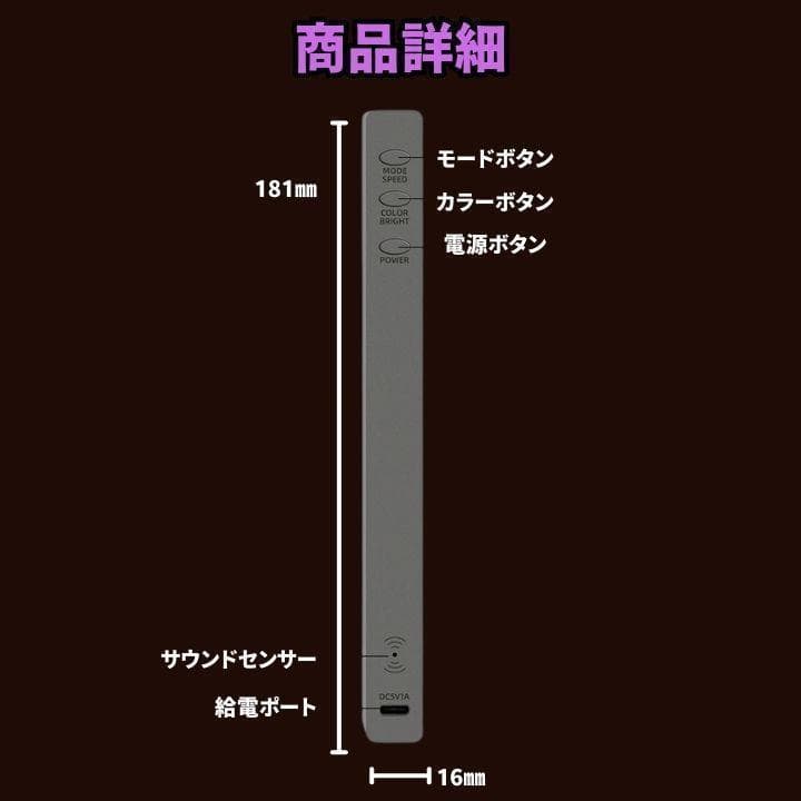 カラー:全18色・ダイナミックモード8つ・光の速度5速・明るさ4段階