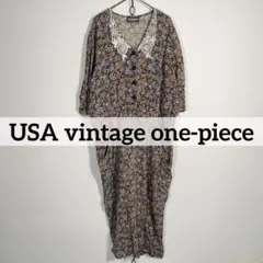 ヴィンテージ 70s 80s USA製 レース 花柄 フラワープリント 総柄 バラ 半袖 ロング ワンピース ドレス