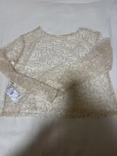 SENSE OF PLACE ブルー ラメ入り長袖 シアーハイネックトップス