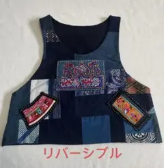 サイズ ゆったり、バスト 110、長さ65。新品リメイク。後ろ花付いてないのは6999円。古布、カギ針編み、パッチワーク、刺繍、色々技法組み合わせて作りました。