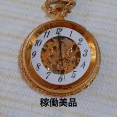 特価!機械式 手巻き 懐中時計ゴールド裏スケルトン
